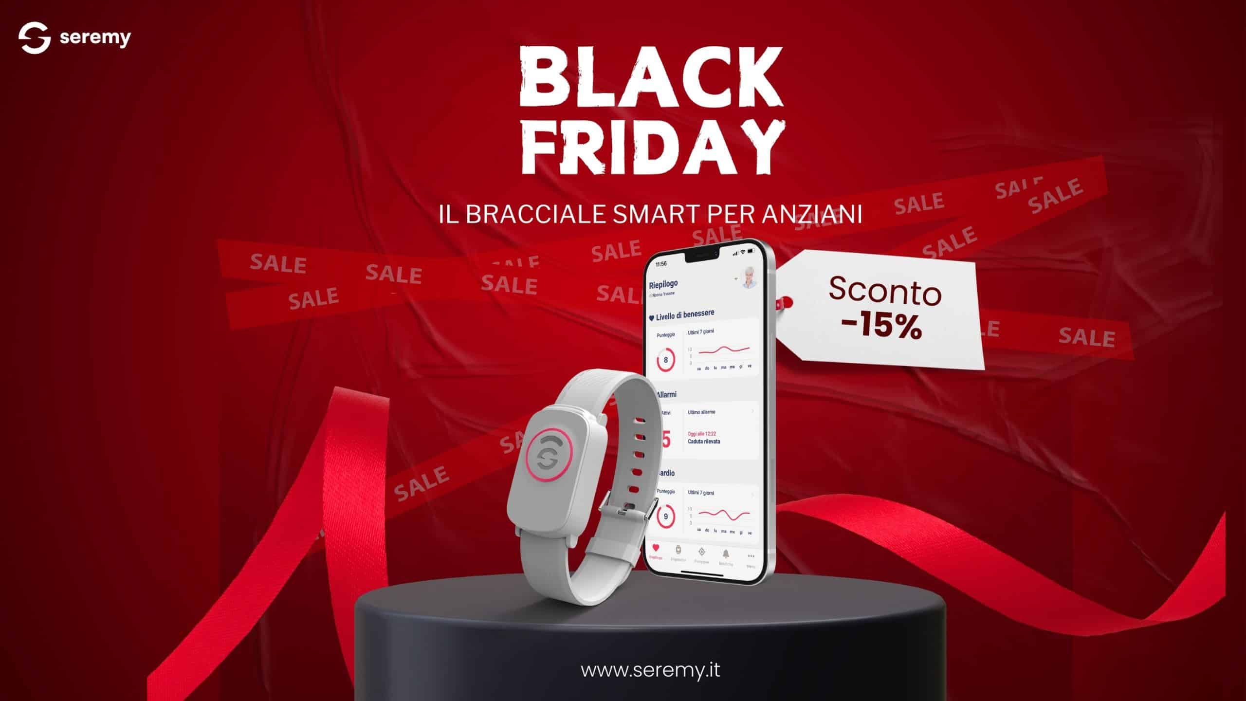 E’ arrivata la a settimana del Black Friday. Da oggi puoi ottenere uno SCONTO DEL 15% sull’acquisto del bracciale salvavita smart Seremy.