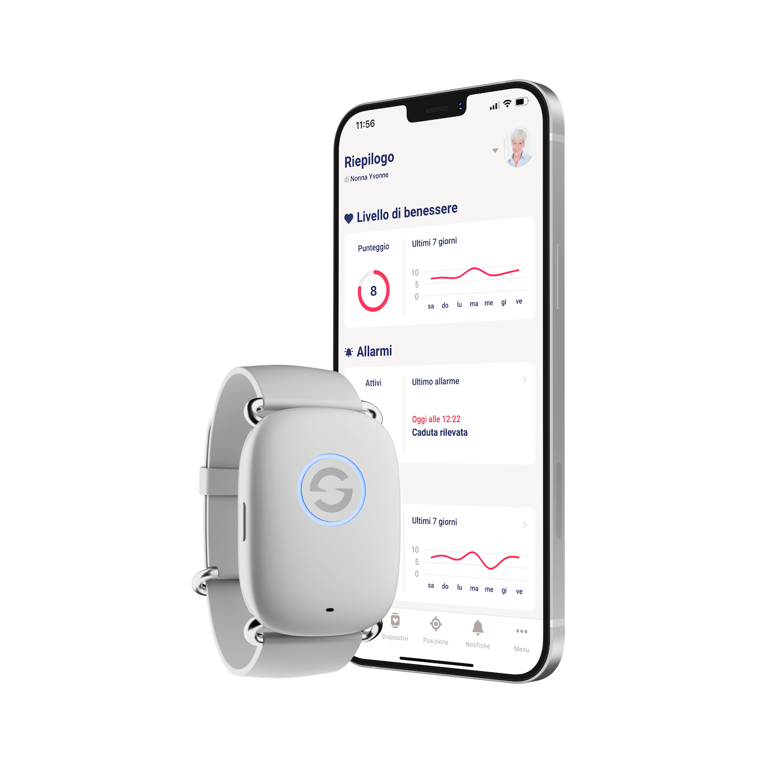 Usa l’app Seremy per monitorare da remoto i famigliari che indossano il bracciale.